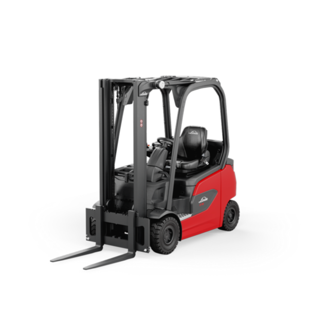E16 – E20 P, yorgunluğu önleyen ve uzun vardiyalarda bile kesintisiz çalışmaya olanak tanıyan konforlu ve ergonomik bir çalışma ortamı sunar. Mast, güç ünitesi ve direksiyon aksı, şasiye elastomer halka yataklarıyla bağlanmıştır. Bu sayede şok emilimi iyileştirilir ve engebeli zeminlerde sürücüyü zararlı titreşimlerden korur. Geniş sürücü kabini, tam grafik 3.5 inç ekran ve kullanıcı dostu kontrol paneliyle donatılmıştır. Farklı sırt destekleri, döşeme seçenekleri ve süspansiyon türleri sunan geniş konforlu koltuk seçenekleri, sürücünün rahat bir oturma pozisyonuna sahip olmasını sağlar. Kapalı kabinli modeller, standart olarak ısıtma ve klima sistemleriyle sunulur, böylece her çalışma koşulunda optimum sıcaklık sağlanır. Opsiyonel olarak direksiyon simidi yerine mini-direksiyon veya joystick içeren yenilikçi Linde Steer Control işletim sistemi mevcuttur. Bu sistem, sürücünün fiziksel yükünü azaltarak daha hassas manevra yapmasını kolaylaştırır.